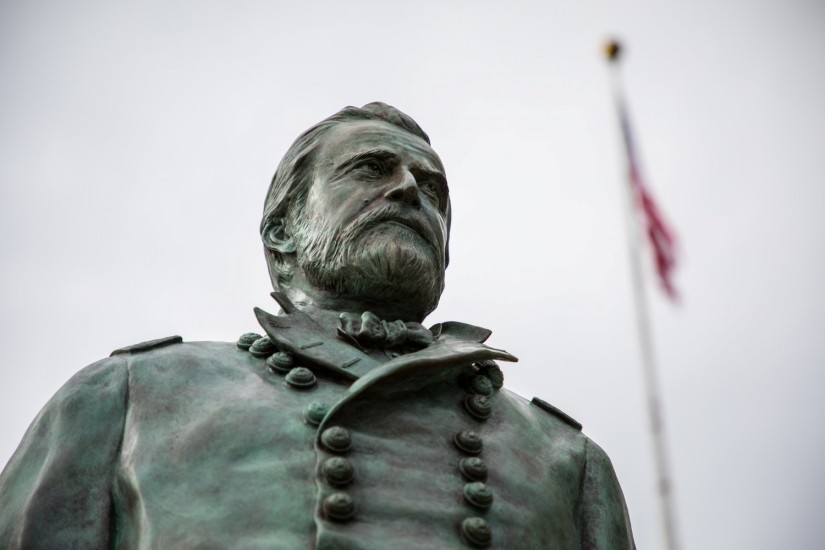 Until this spring, however, Grant was a little hard to find at his alma mater. Wherever he did appear, it was in the company of Lee. Their portraits flank a doorway inside the library, and in the old library they faced each other, like duelists suspended in time, at opposite ends of the reference room. Lee Barracks sits next to Grant Barracks. A structure called Reconciliation Plaza, given by the Class of 1961 on the occasion of its 40th reunion, features reliefs of Grant and Lee at its center. A series of panels dramatizes local moments of amity across the lines in the midst and wake of the war. These plaques tell a highly sentimental story about reunion and healing—especially that between West Point graduates who found themselves on opposing sides of the battlefield. But you can read them all without ever learning why the war was fought and what it achieved. I suspect that the monument’s donors, a class that suffered great loss in Vietnam, found in this narrative a way to comment obliquely on the nation’s failure to reconcile itself to their war.