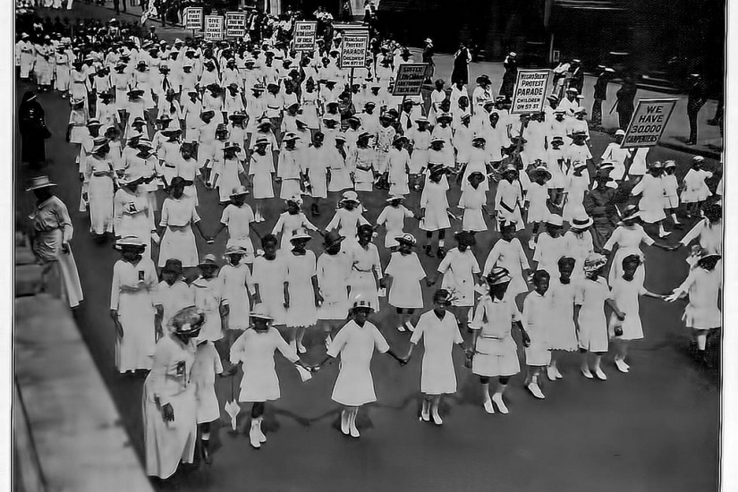 That march on July 28, 1917, was a massive silent protest against racial violence. Outraged by several recently-publicized lynchings in Memphis, Tennessee, and Waco, Texas, along with attacks on black workers in East St. Louis, Illinois, the NAACP organized a march that some historians now call the beginning of the civil rights movement.