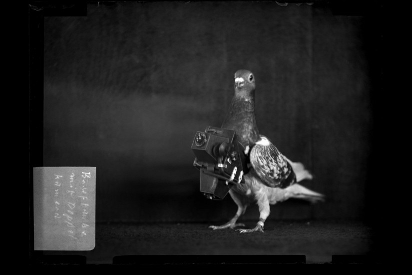In 1907, just a few years after the Wright brothers lifted off in Kitty Hawk, and while human flight was still being measured in metres and minutes, Dr. Julius Neubronner, a German apothecary, submitted a patent application for a new invention: the pigeon camera. The device was precisely what it sounds like—a small camera fitted with straps and equipped with a timer so that pigeons could carry it and take photos in flight. Neubronner first used the device on his own flock of homing pigeons, which he sometimes employed to deliver prescriptions. In the following years, he showed his camera at international expositions, where he also sold postcards taken by the birds. Additionally, he developed a portable, horse-drawn dovecote, with a darkroom attached to it, which could be moved into proximity of whatever object or area the photographer hoped to capture from on high. These inventions represented a breakthrough at the time, allowing for surveillance with speed and range that was previously impossible. (Whether the cameras would actually capture the desired object, however, depended on luck and the whims of the pigeons.) The technology would soon be adapted for use in wartime—the cameras served as very early precursors to drones—although by the time of the First World War, just a few years later, airplanes were allowing people to do things that only pigeons could have done before.